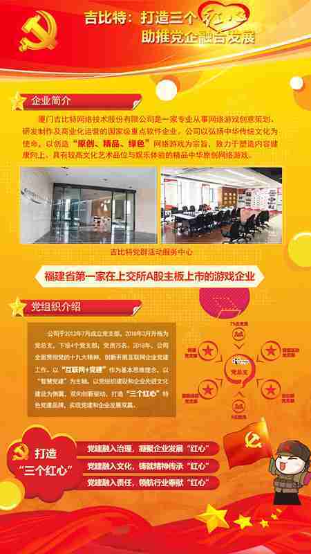 未来公司将全面学习贯彻习近平新时代中国特色社会主义思想和党的十九大精神,,持续强化“互联网+党建”的思维理念,,,以“智慧党建”为主轴,,,,以党组织建设和企业先进文化建设为侧翼,,双向创新驱动,,,引领有信仰、、、、有情怀、、有价值的新时代游戏研发运营,,,,在不断发展壮大的同时,,,成为行业的“红色标杆”,,,实现党建和企业发展双赢。。。