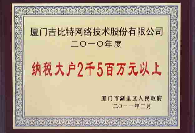 日前,,,公司被厦门市湖里区人民政府授予了“2010年纳税大户”的荣誉称号,,,,充分体现了公司一贯合法纳税、、、、诚信经营的良好企业社会公民行为。。。